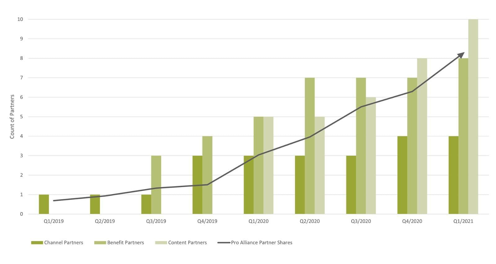 Since its introduction, the Pro Alliance has proven to be a successful new business model. We are welcoming more content, channel, and benefit partners monthly and the shares distributed to them grow strongly as well. We proudly share the growth rate of the Pro Alliance.
